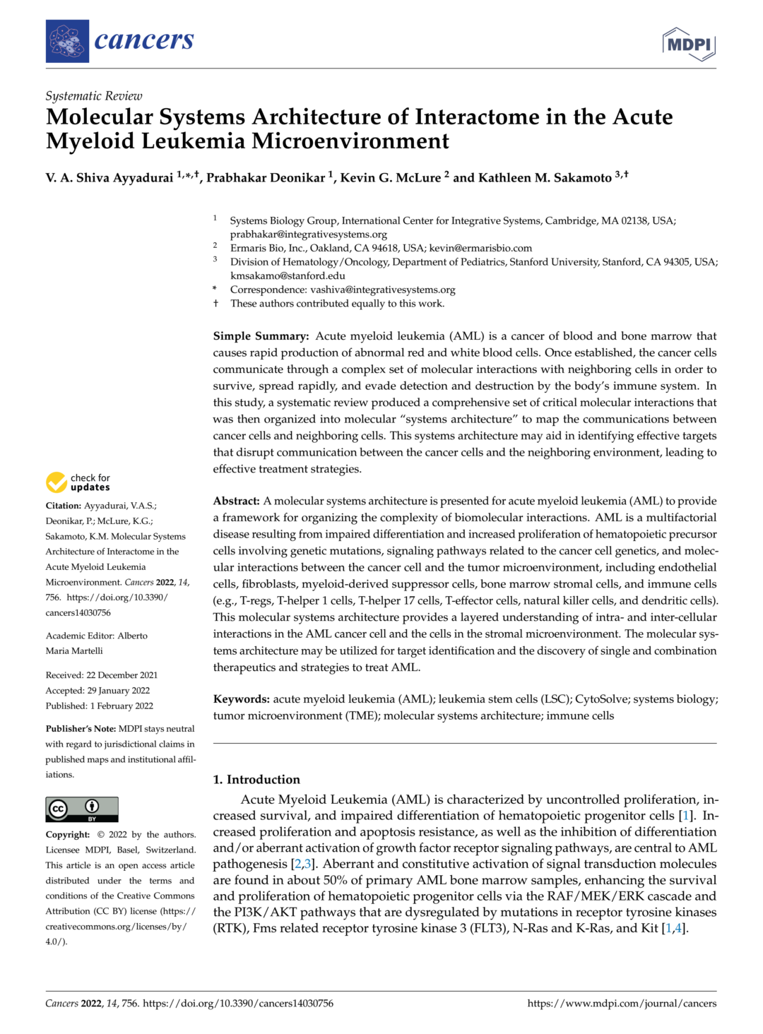 A peer-reviewed publication resulting from the work of AML initiative was published in 2022 in the Cancers Journal. Download the paper below