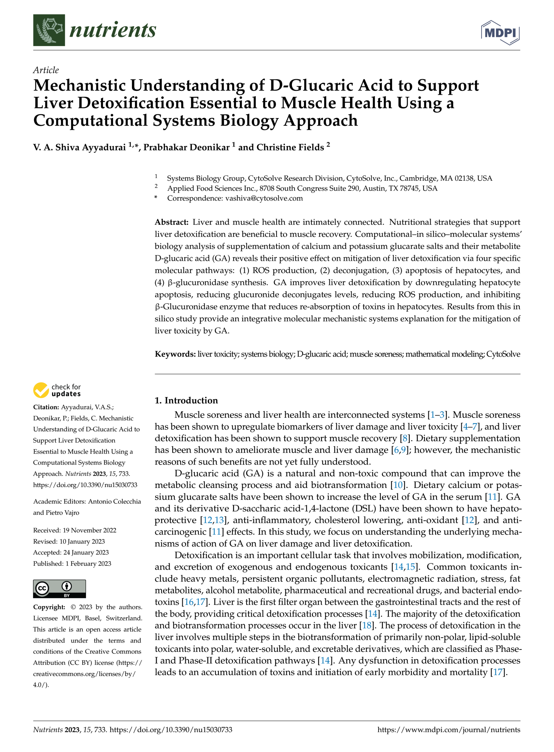 A peer-reviewed publication from the Liver Health Initiative has been released on 2023 in the Nutrients Journal to benefit the public by revealing powerful insights into the use of D-Glucaric acid to support liver detoxification—support this initiative to advance scientific discovery and deliver real solutions.