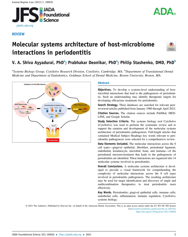 V.A. Shiva Ayyadurai1,2, Prabhakar Deonikar1,2 & Philip Stashenko31Systems Biology Group, CytoSolve Research Division, CytoSolve, Inc., Cambridge, MA2Open Science Institute, International Center for Integrative Systems, Cambridge, MA3Departments of Translational Dental Medicine and Departmetn of Endodontics, Goldman School of Dental Medicine, Boston University, Boston, MA